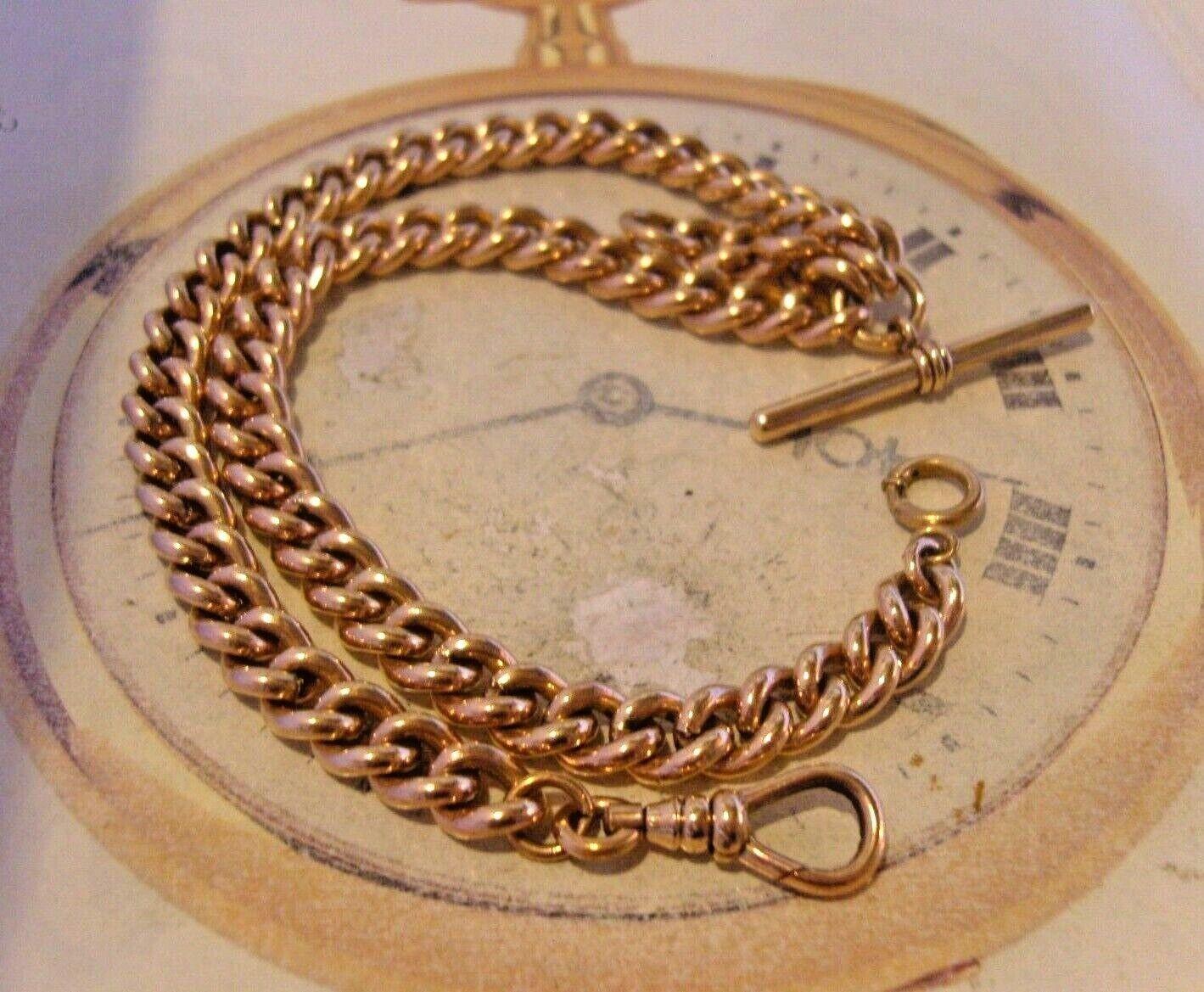 Victorian Pocket Watch Chain 1890s Antique 14ct Rose Gold Filled Albert 57 Grams