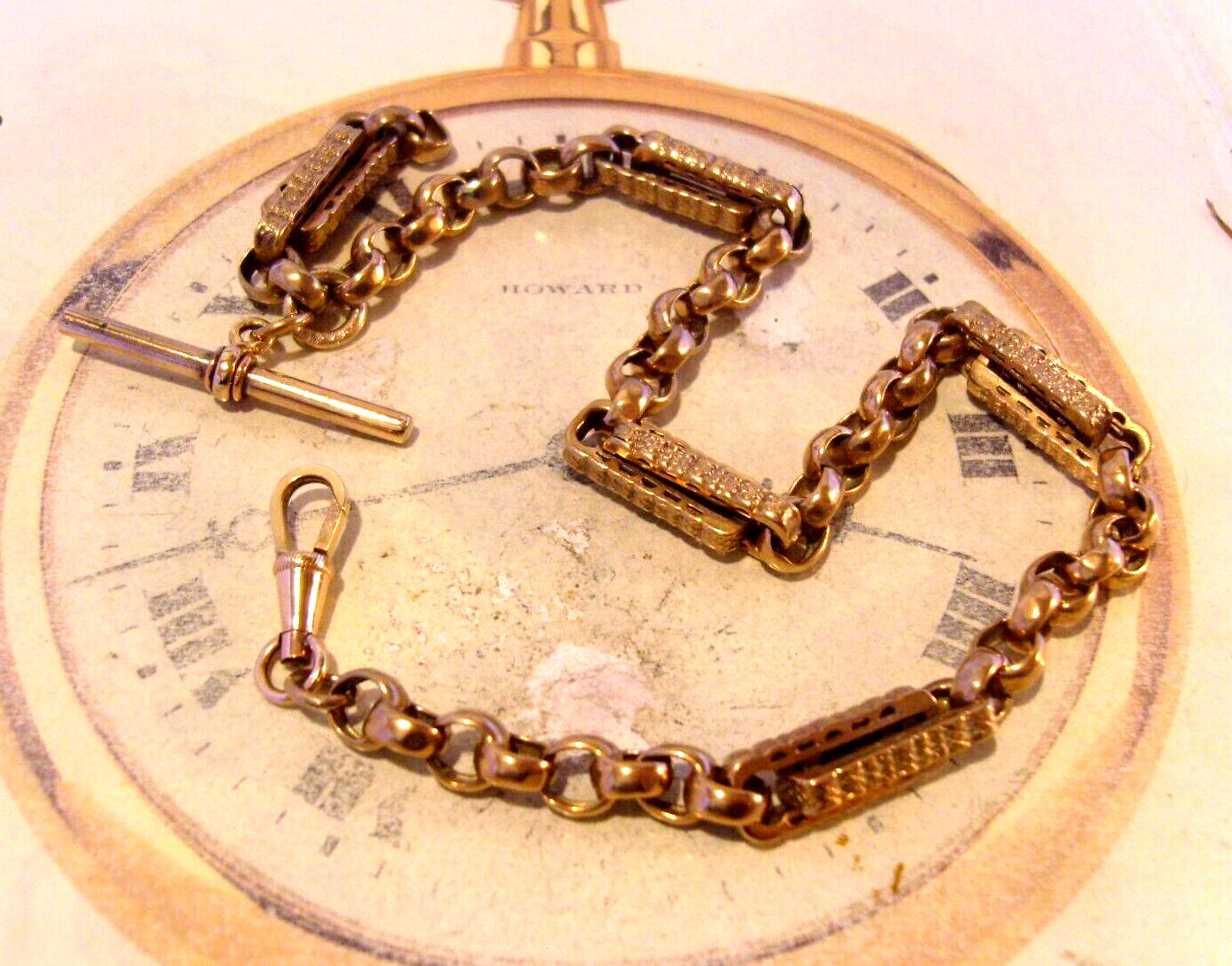Victorian Pocket Watch Chain 1890s Antique 14ct Rose Gold Filled Albert With T Bar