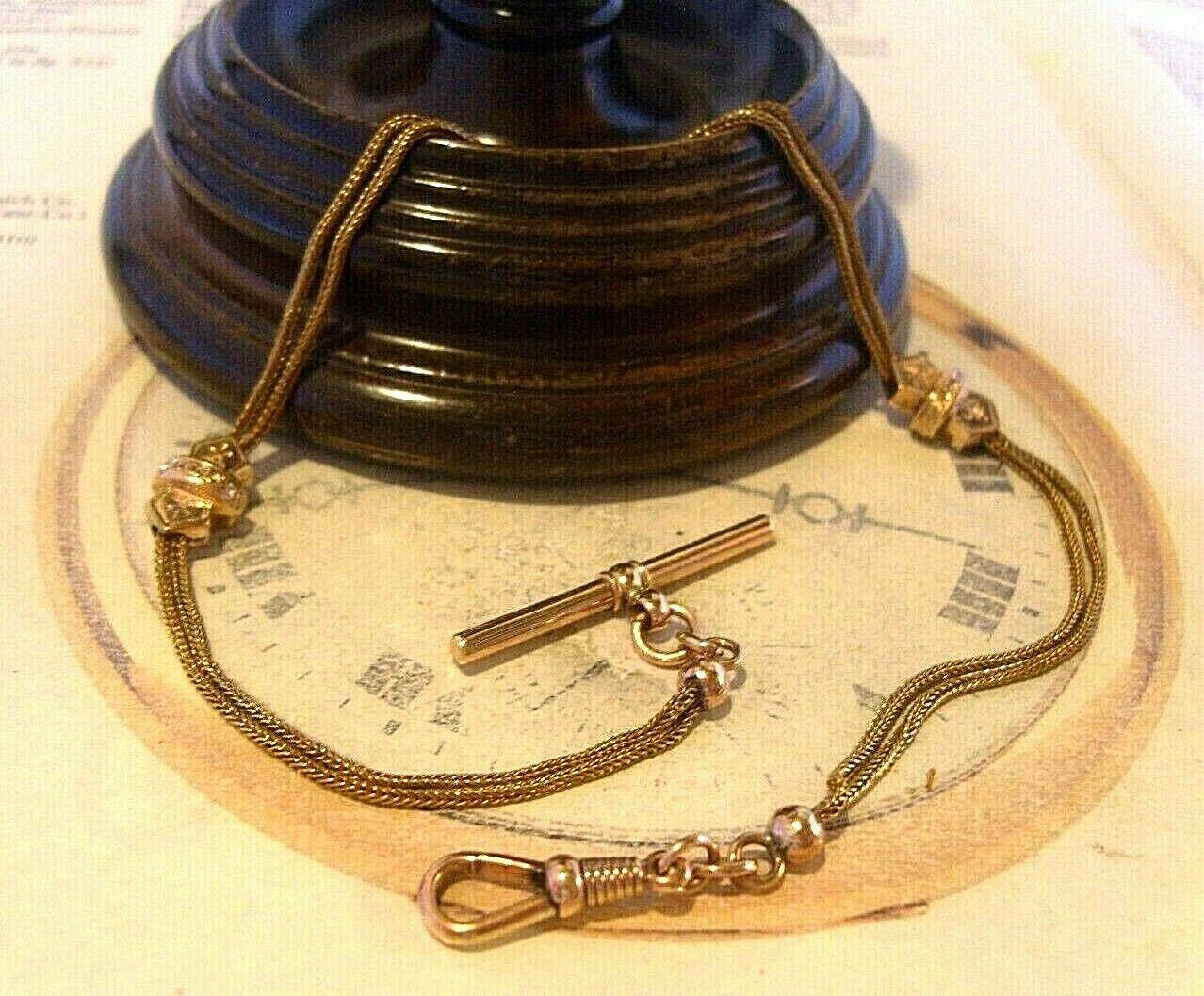 Victorian Pocket Watch Chain 1890s Antique 18ct Rose Rolled Gold Fancy Albert With T Bar