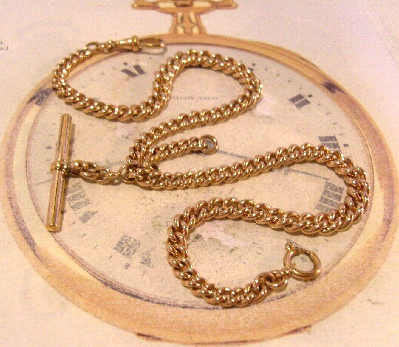 Victorian Pocket Watch Chain 1890s Antique 9ct Rose Rolled Gold Double Albert