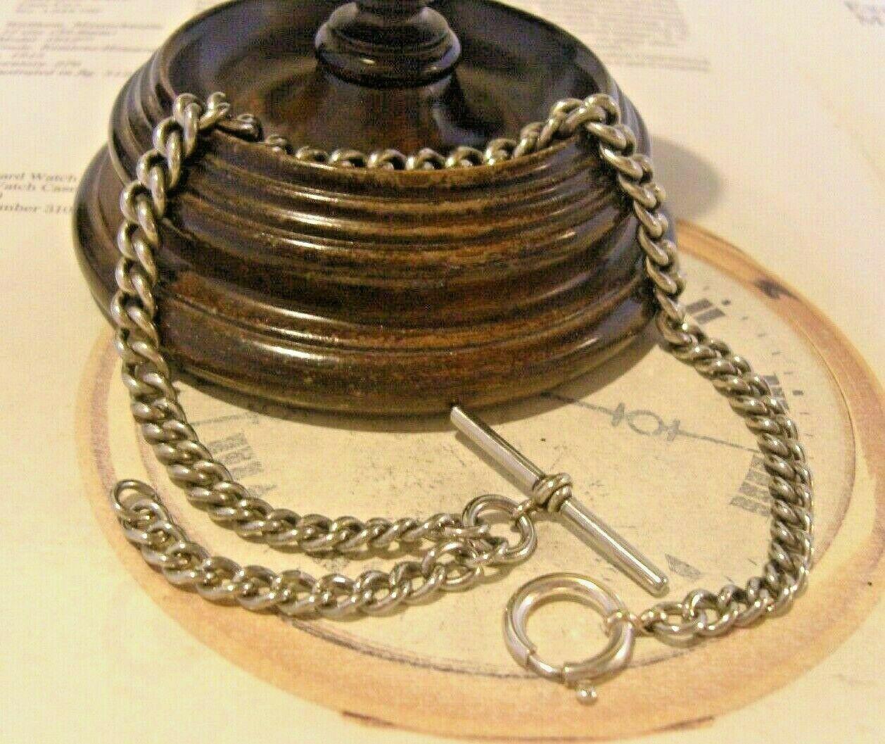 Victorian Pocket Watch Chain 1890s Antique Albo Silver Curb Link Albert With T Bar