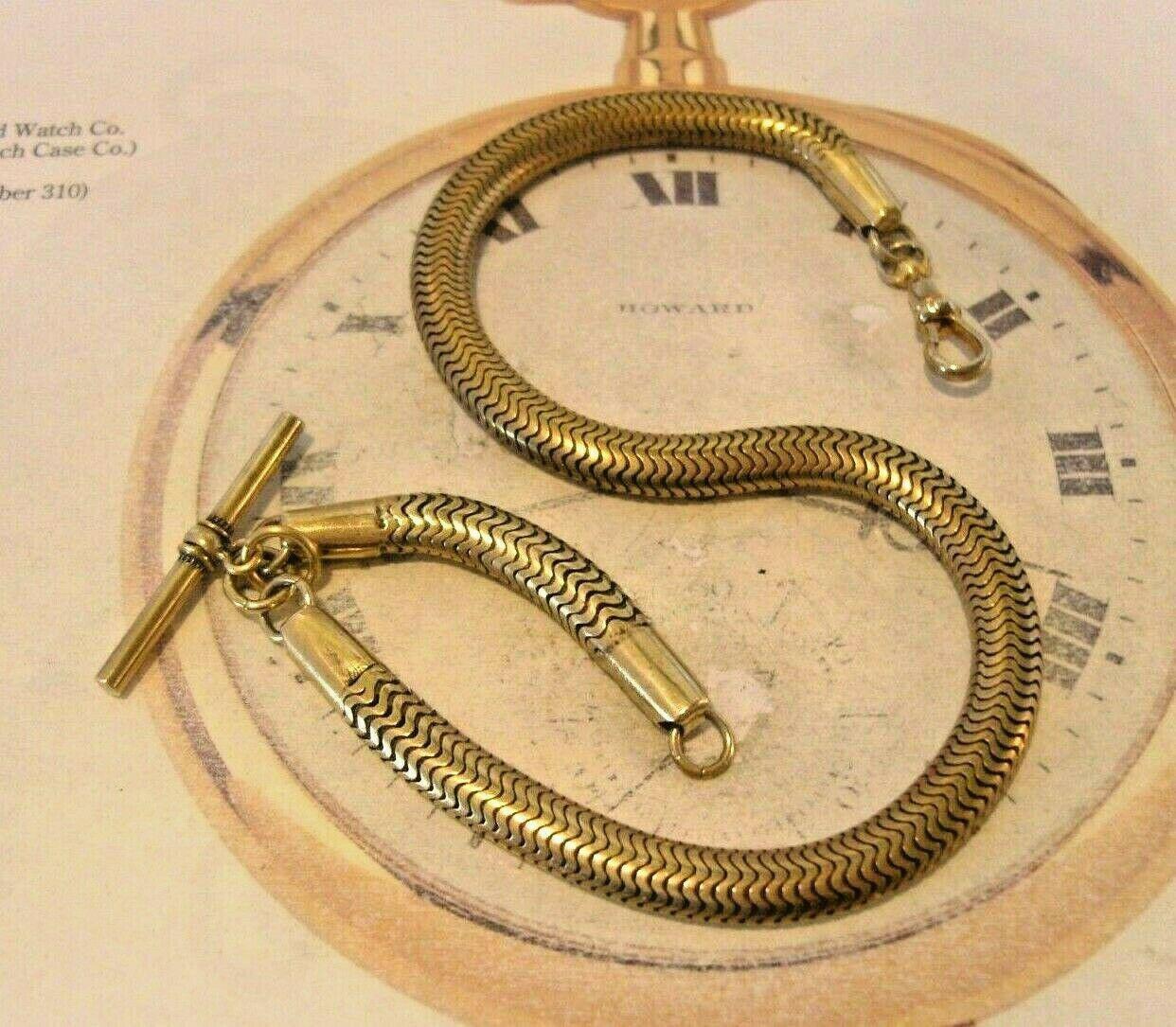 Victorian Pocket Watch Chain 1890s Antique Huge Brass Snake Link Albert With T Bar