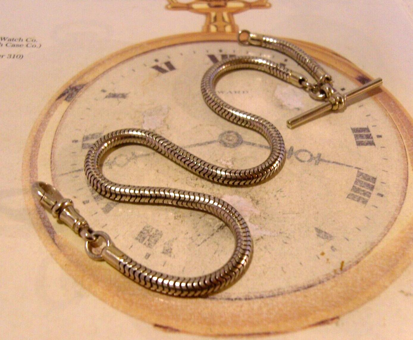 Victorian Pocket Watch Chain 1890s Antique Large Silver Nickel Snake Link Albert