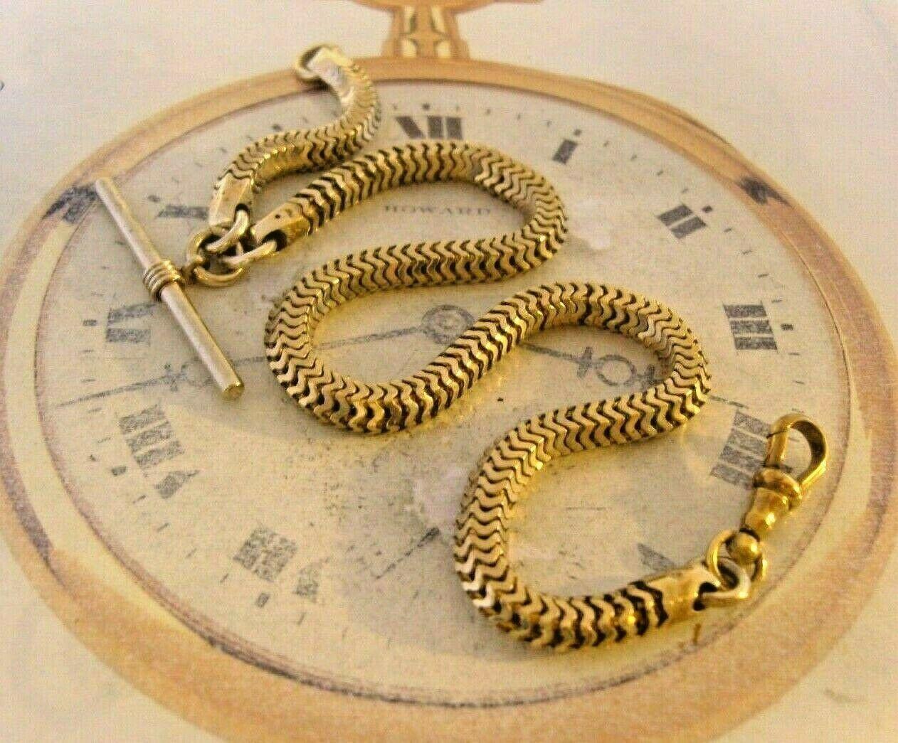Victorian Pocket Watch Chain 1890s Impressive Large Brass Snake Link Albert With T Bar