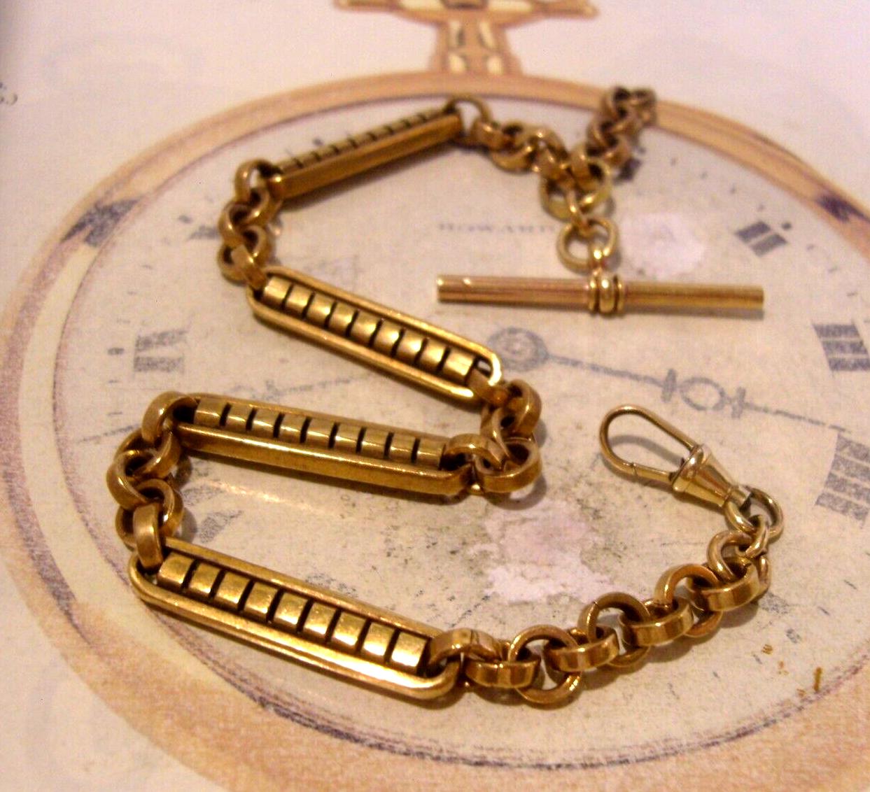 Victorian Pocket Watch Chain 1890s Large Antique Brass Fancy Albert With T Bar