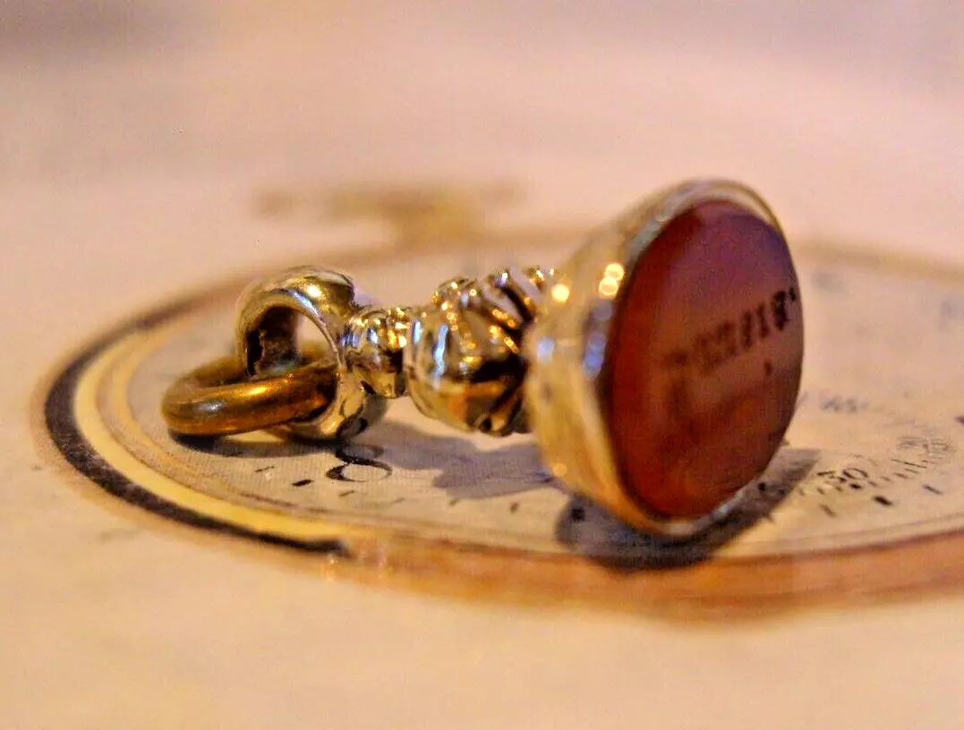 Victorian Pocket Watch Chain Fob 12ct Gold Cased & Carnelian Lousia Name