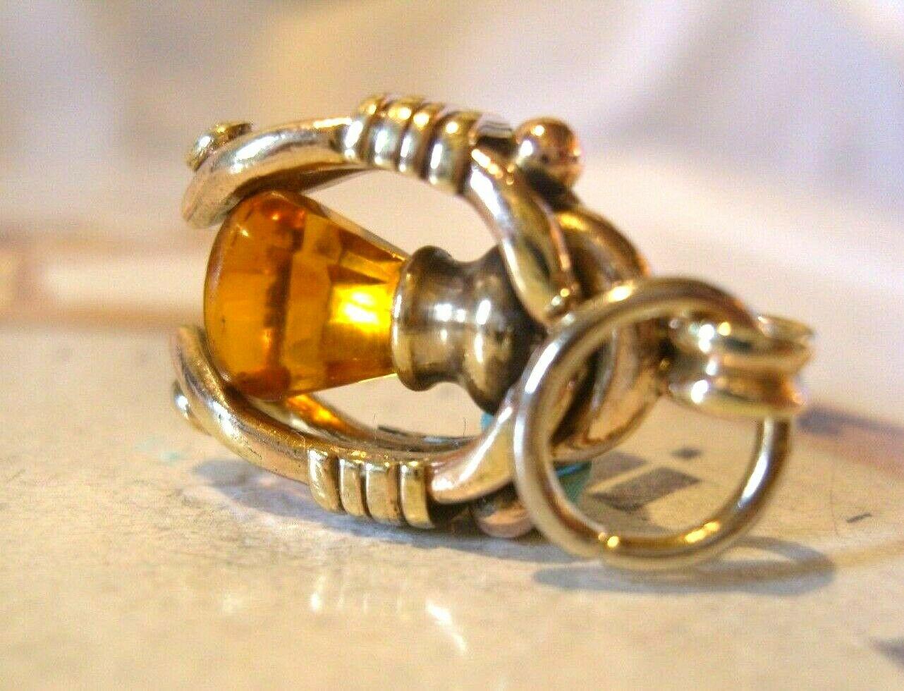Victorian Pocket Watch Chain Fob 1890s Antique 10ct Rose & Yellow Gold Filled Citrine Fob