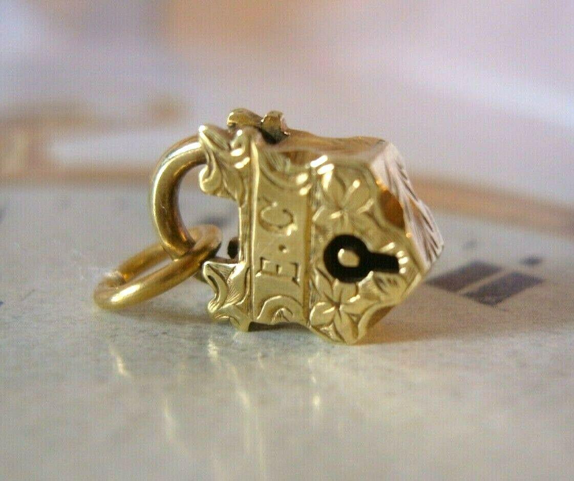 Victorian Pocket Watch Chain Fob 1890s Dainty Antique Gilt Miniature Padlock Fob