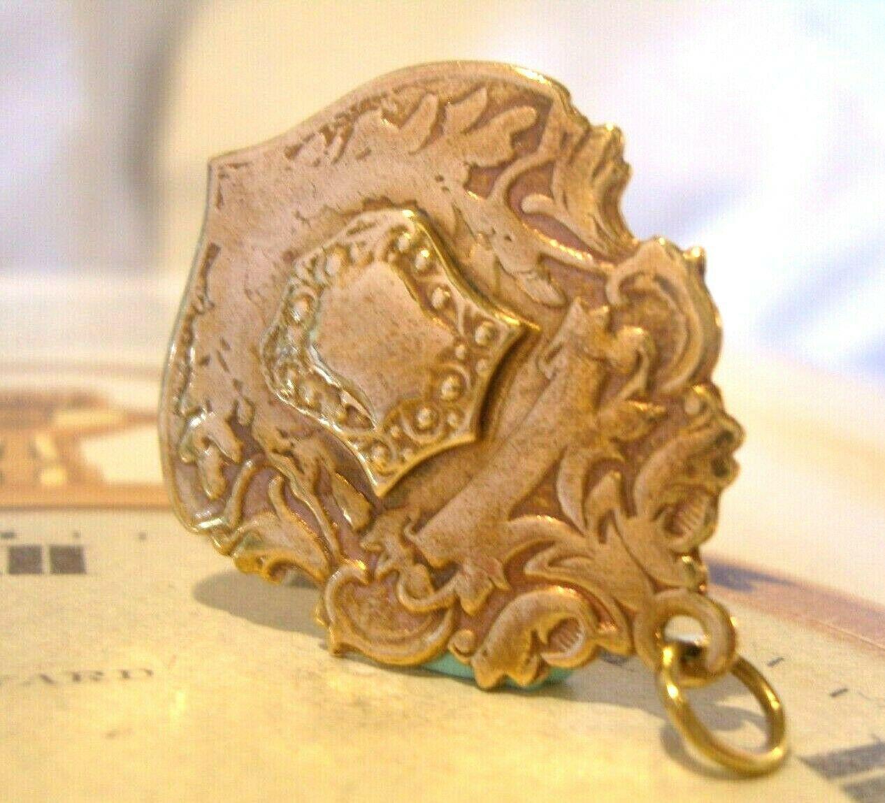 Victorian Pocket Watch Chain Fob 190s Antique 18ct Gold Plated Large Shield Fob