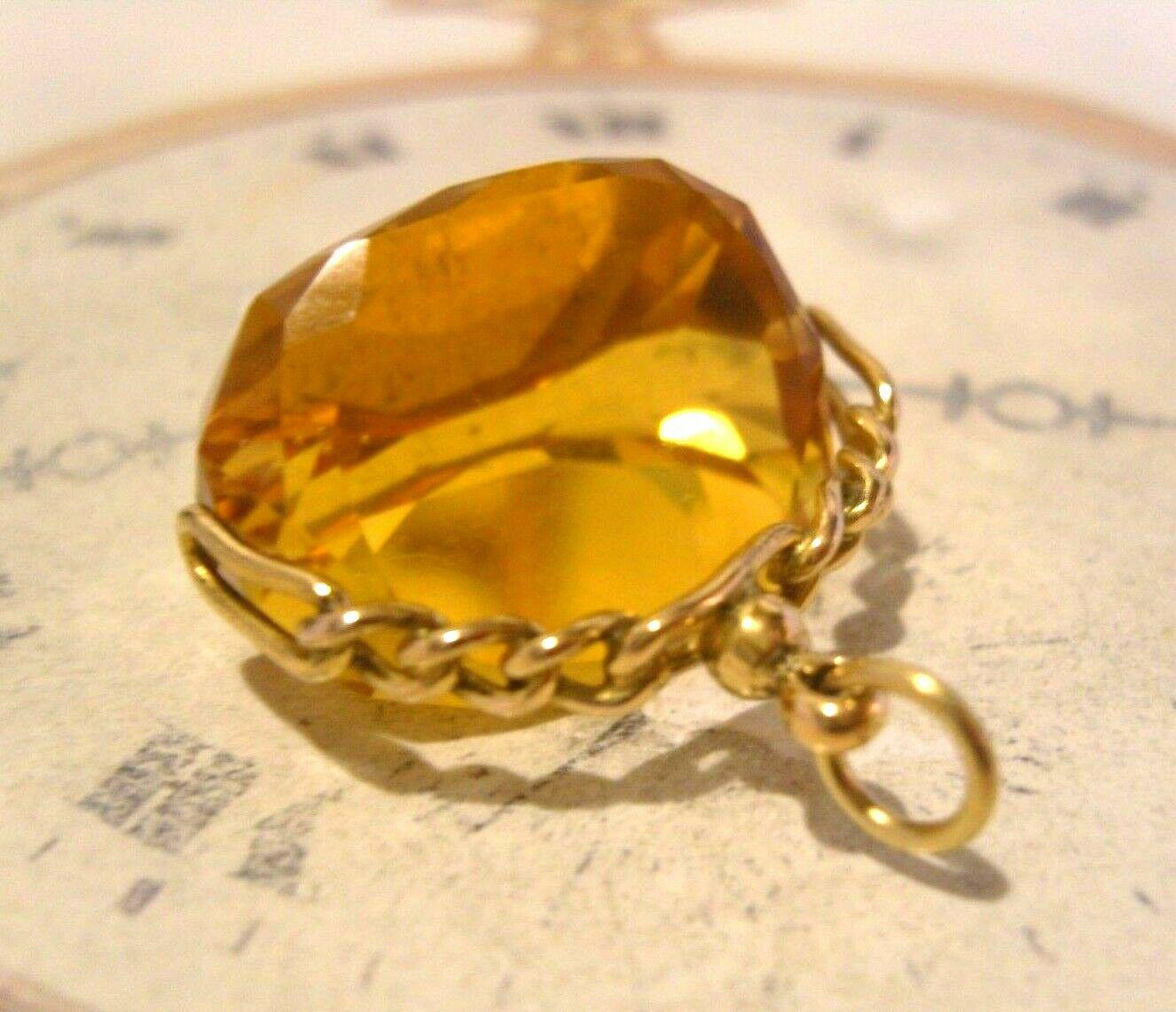 Victorian Pocket Watch Chain Huge Spinner Fob 1890s Antique Gilt & Citrine Fob