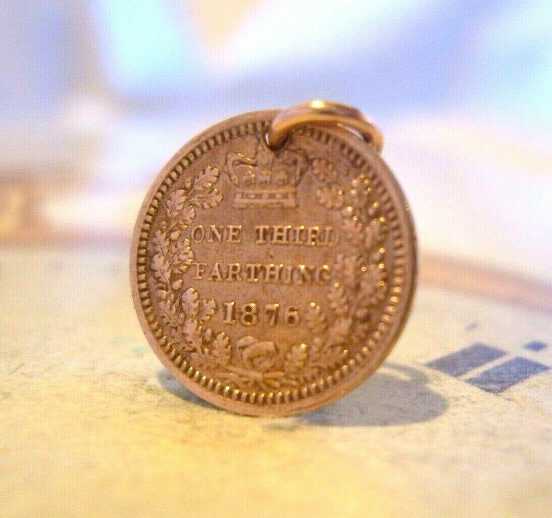 Victorian Pocket Watch Chain One Third Farthing Coin Fob 1876 Queen Victoria Fob