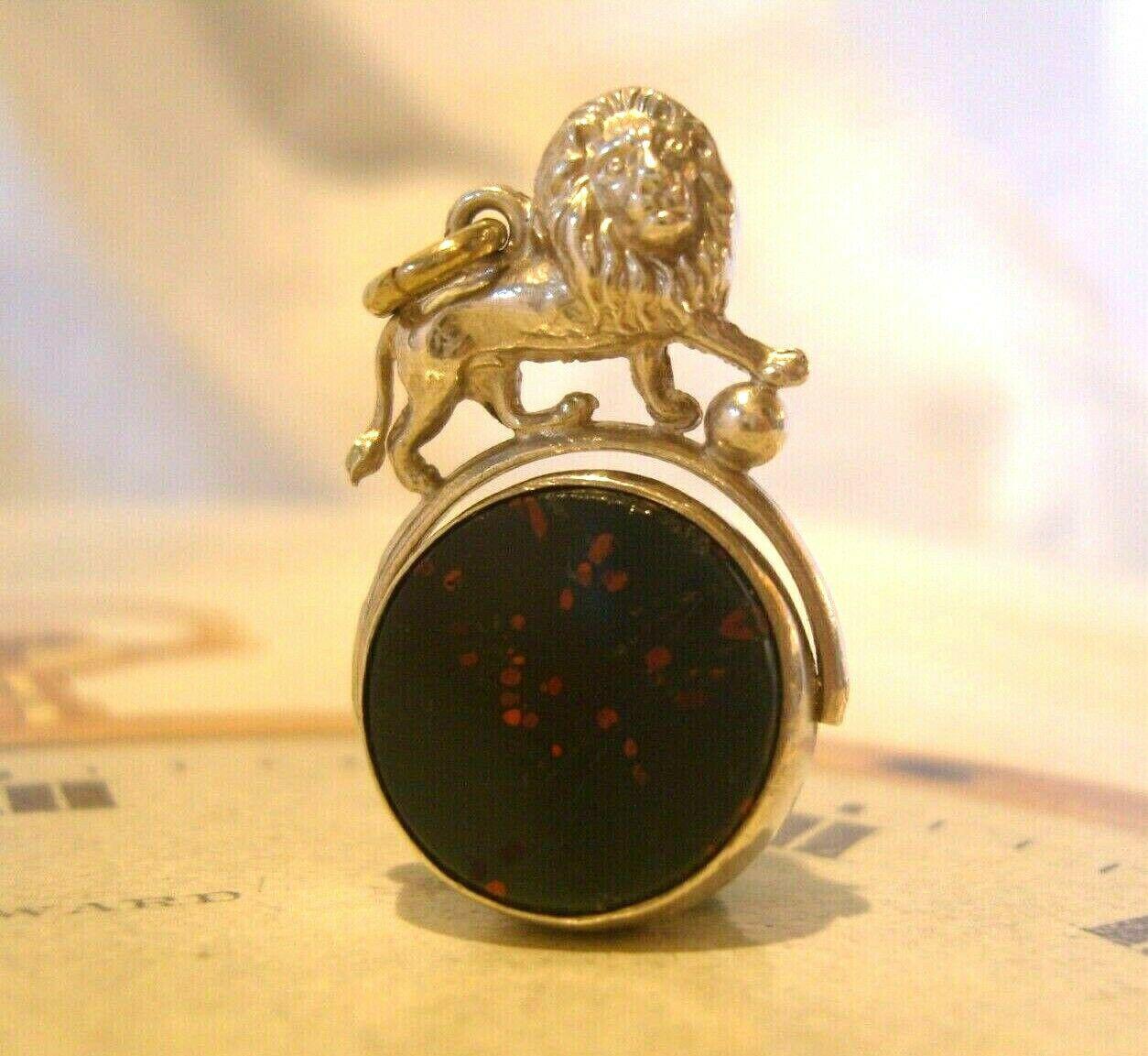 Victorian Pocket Watch Chain Silver Lion Fob 1899 Antique Stone Set Swivel Fob
