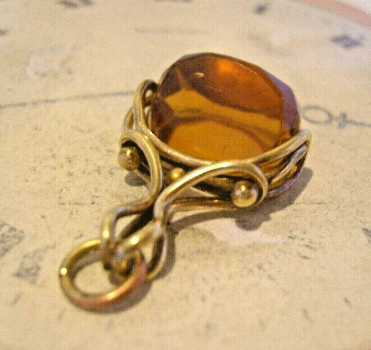 Victorian Pocket Watch Chain Spinner Fob 1890 Antique Large Gilt & Glass Fob