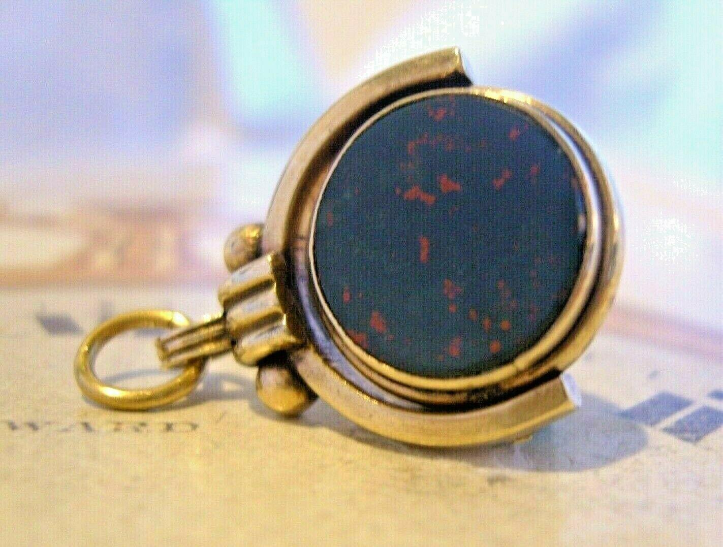 Victorian Pocket Watch Chain Spinner Fob 1890s Antique Brass Bloodstone & Carnelian Fob