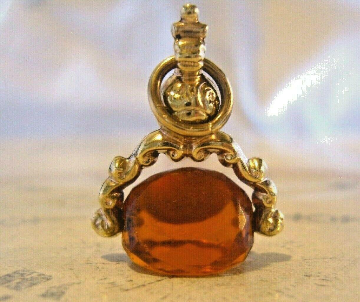 Victorian Pocket Watch Chain Spinner Fob 1890s Antique Large Gilt & Glass Fob