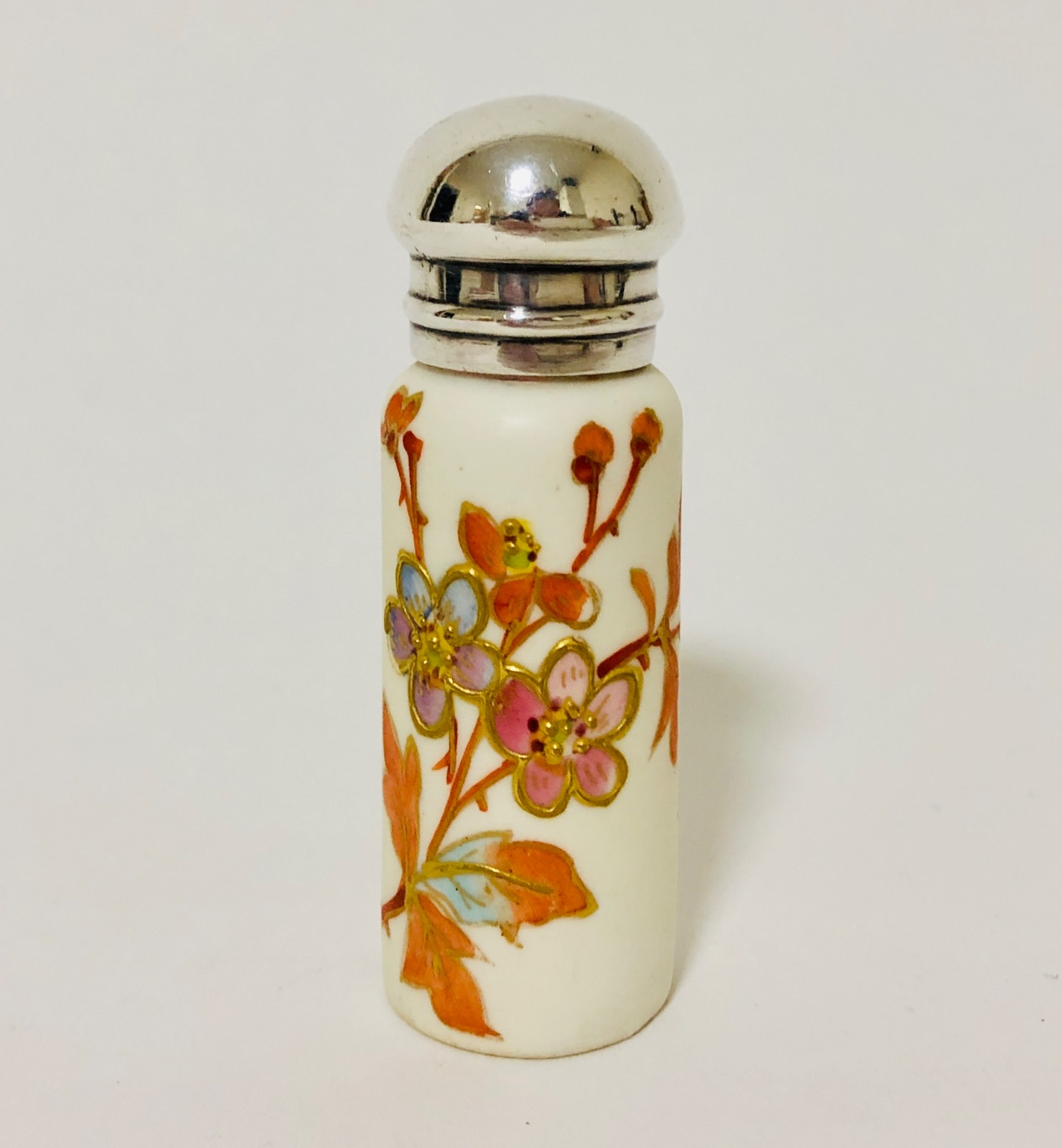 Victorian Porcelain Hand Painted Scent Bottle with Silver Top
