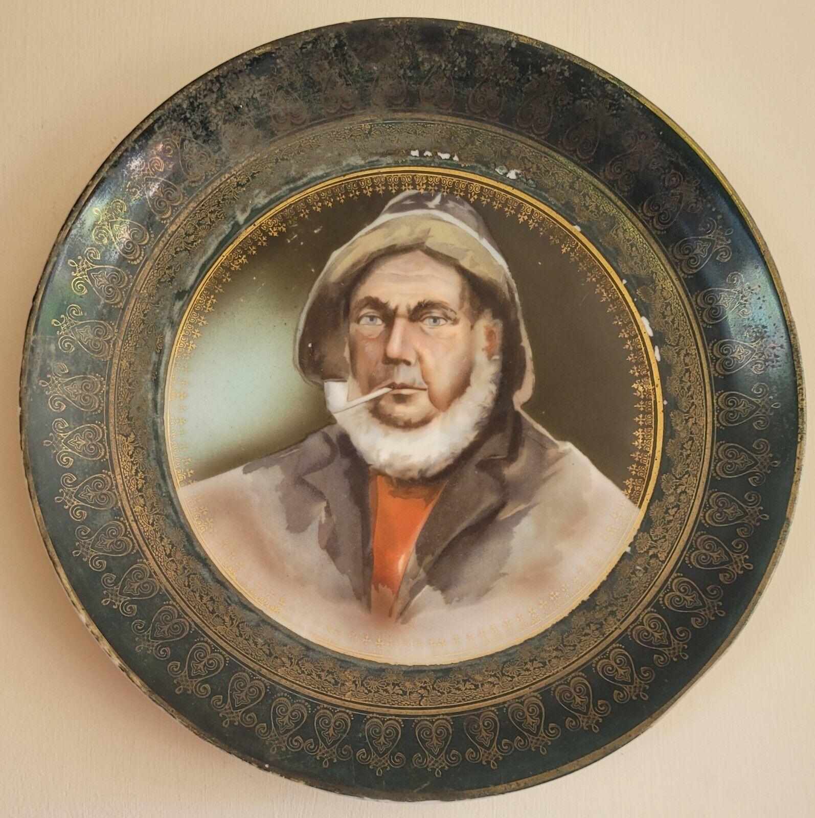 Victorian Portrait Plate Fisherman / Seafarer Smoking a Clay Pipe