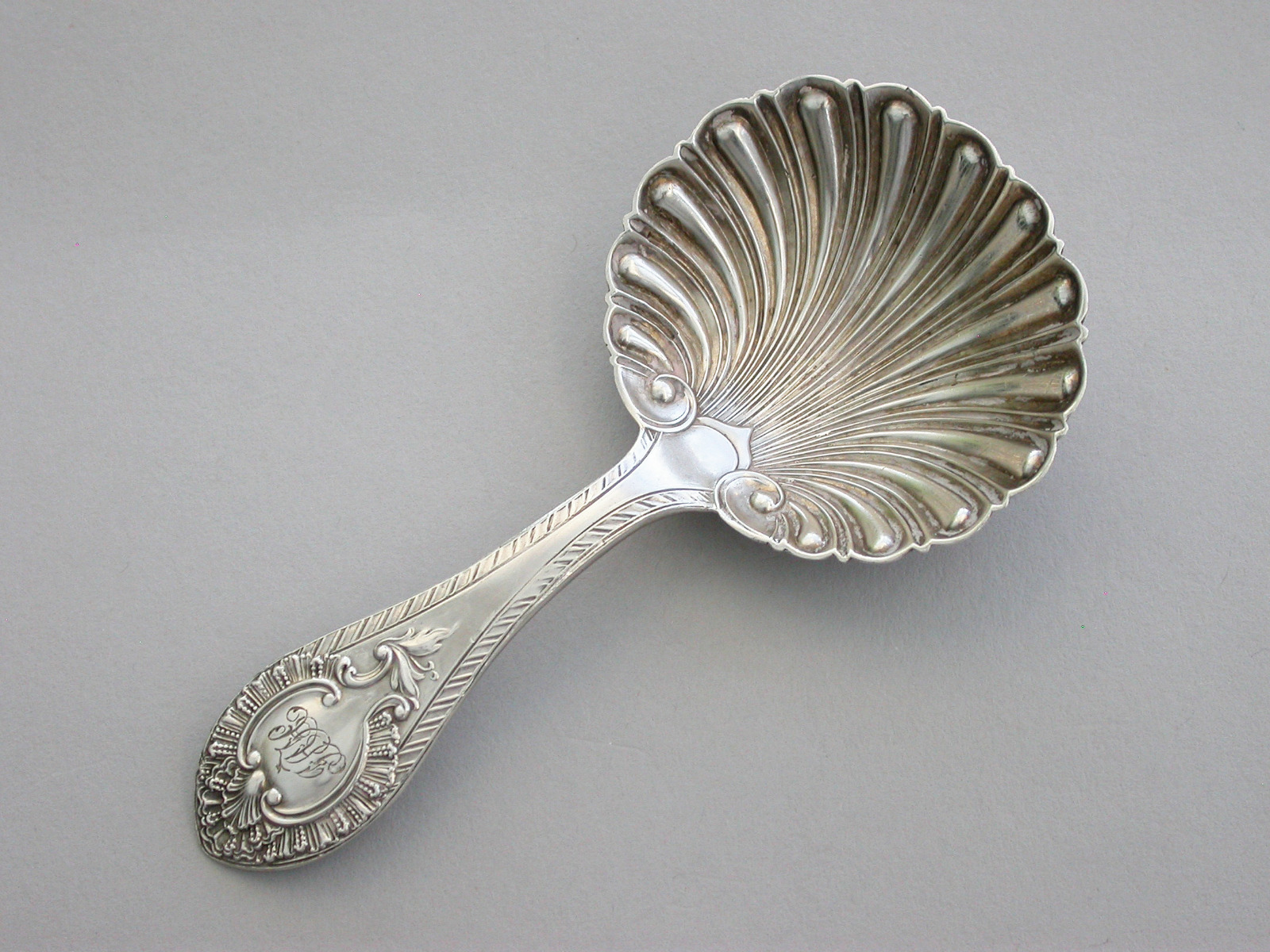 Victorian Provincial Cast Silver Caddy Spoon by Martin Hall & Co, Sheffield, 1866