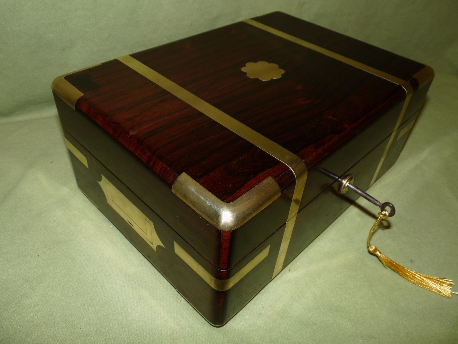 Victorian Quality Brass Bound Rosewood Unisex Jewellery – Dressing Box. C1830