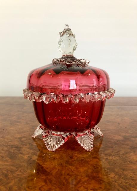 Victorian Quality Cranberry Glass Lidded Bowl (1 of 3)