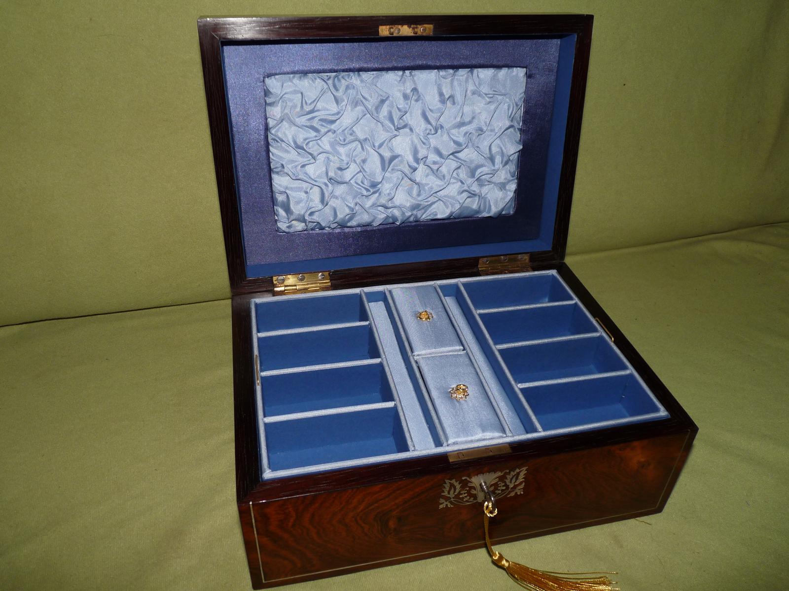 Victorian Quality Inlaid Rosewood Jewellery Box+ Tray c.1850