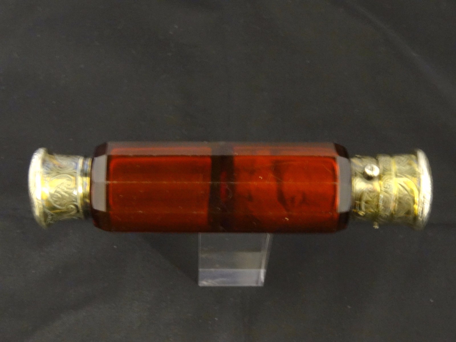 Victorian Red Double Glass & Silver Scent Bottle, Initialled c.1847