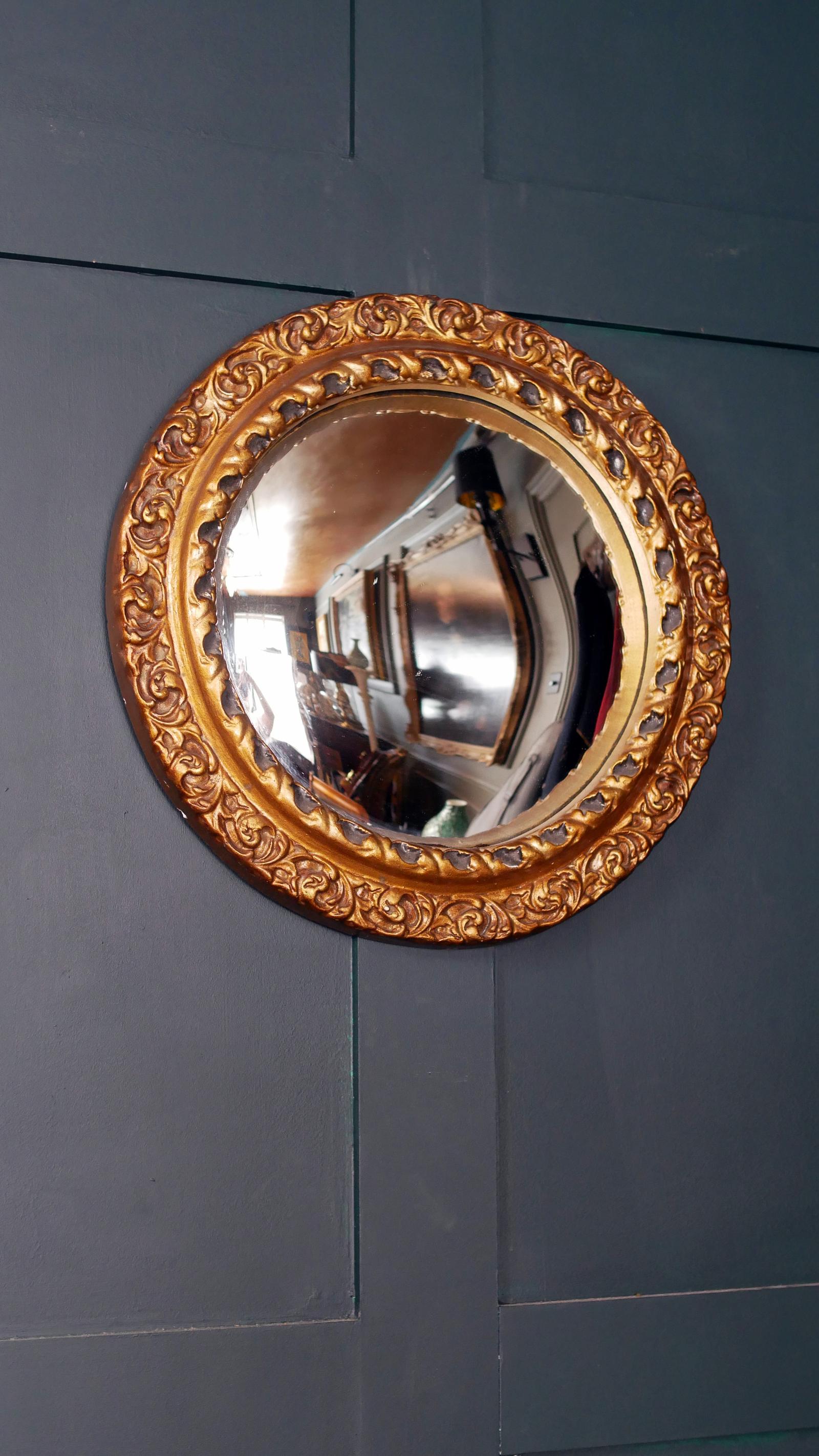 Exquisite Antique Carved Gesso Convex "Butler’s" Mirror