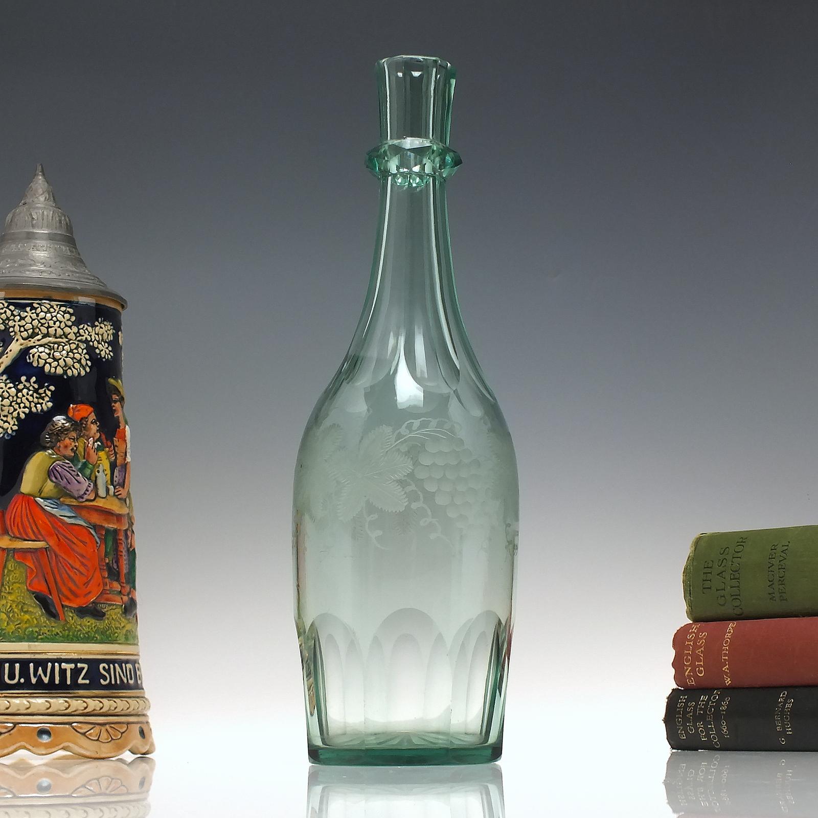 Victorian Richardson & Son Green Engraved Serving Bottle c.1870