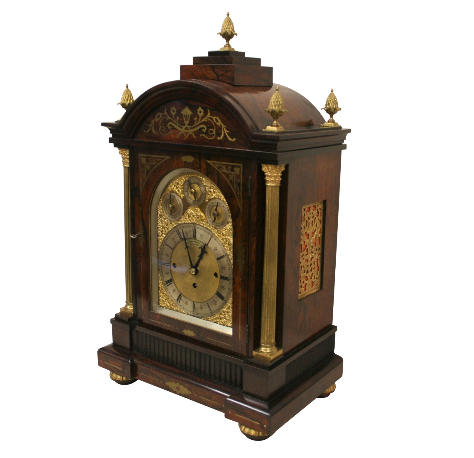 Victorian Rosewood Boardroom Bracket Clock with a Triple Fusee Double-Chiming Movement