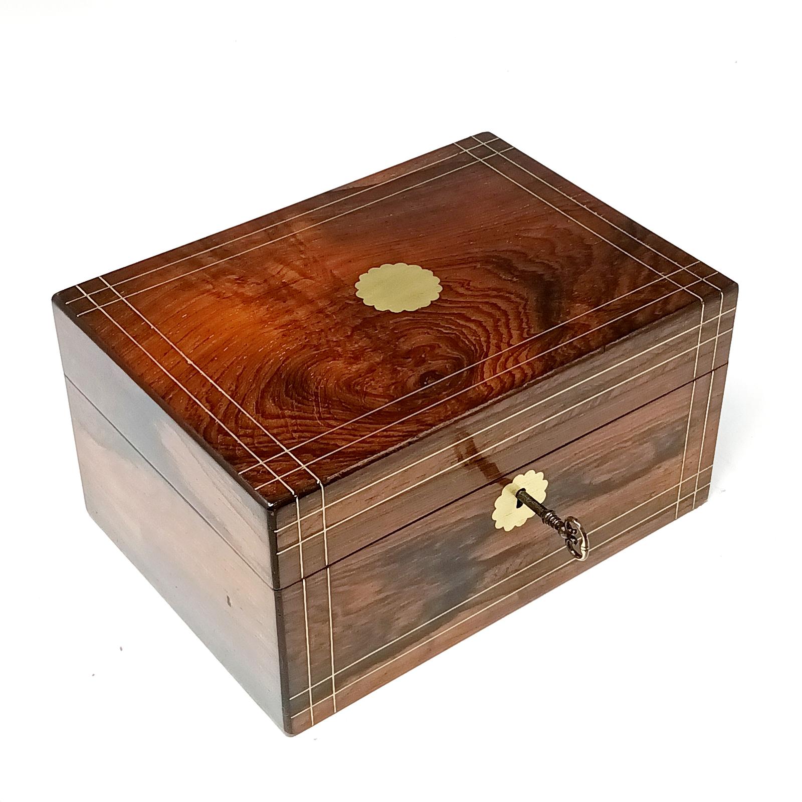Victorian Rosewood & Brass Inlaid Jewellery Box