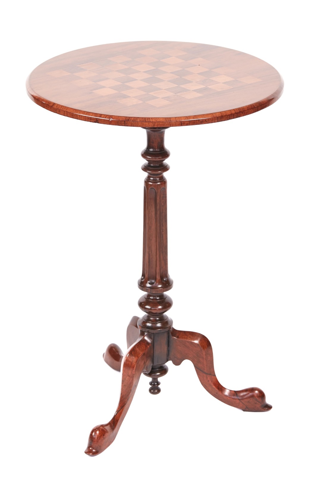 Victorian Rosewood Chequer Top Inlaid Pedestal Games Table (1 of 1)