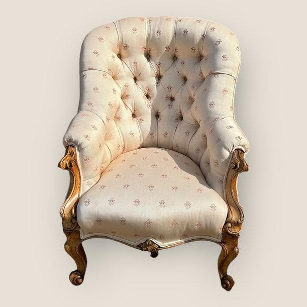 Victorian Rosewood & Floral Patterned Button Back Armchair with Cabriole Legs