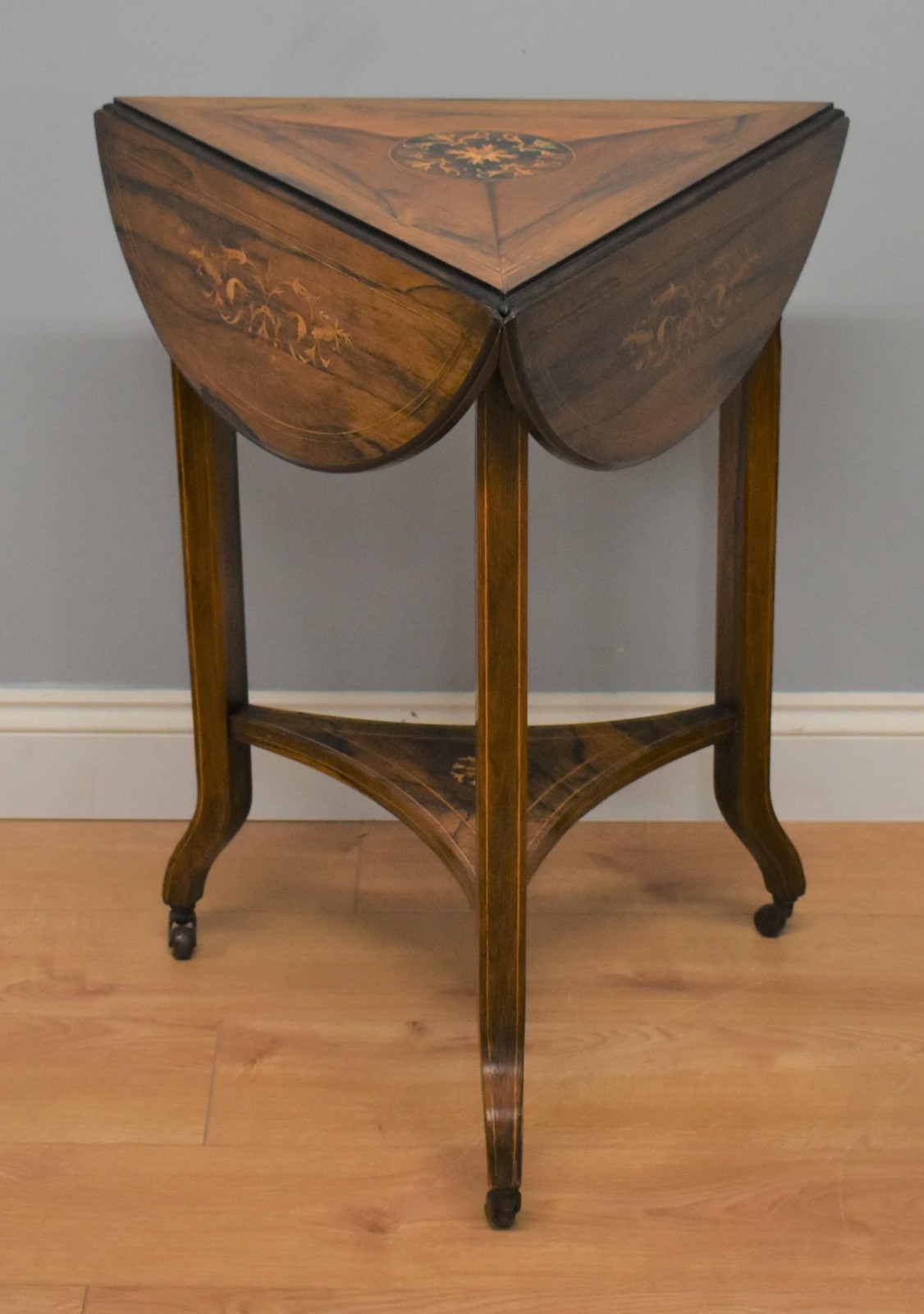 Victorian Rosewood Inlaid Drop Leaf Tripod Table