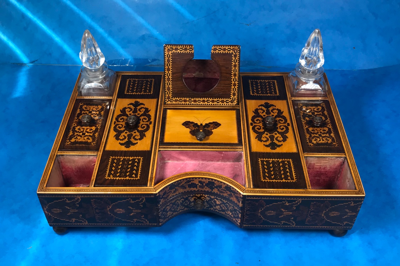 Victorian Rosewood Jewellery / Vanity Tray with Beautiful Tunbridge Ware Inlay
