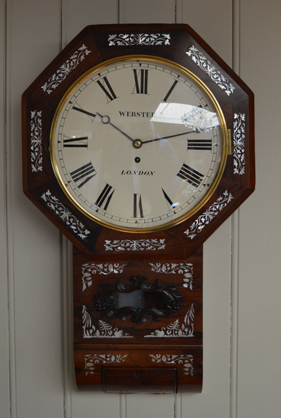 Victorian Rosewood & Mother of Pearl Drop Dial Wall Clock, England, 1850 (1 of 1)