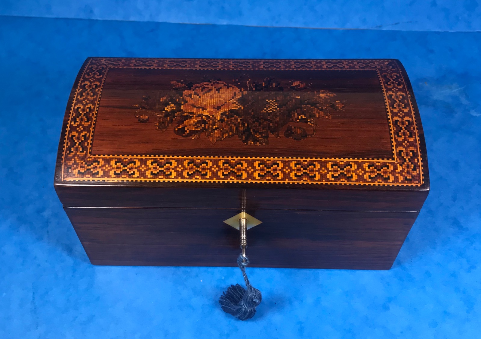 Victorian Rosewood Staionary Box with a Tunbridge Ware Mosaic Border & Floral Inlay