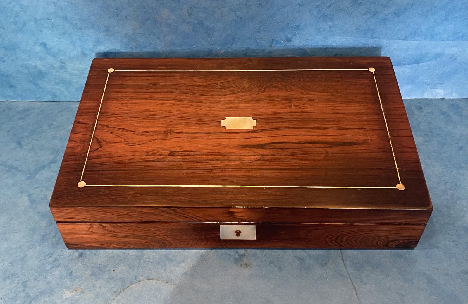 Victorian Rosewood Table Box With Pewter and Mother Of Pearl Inlay