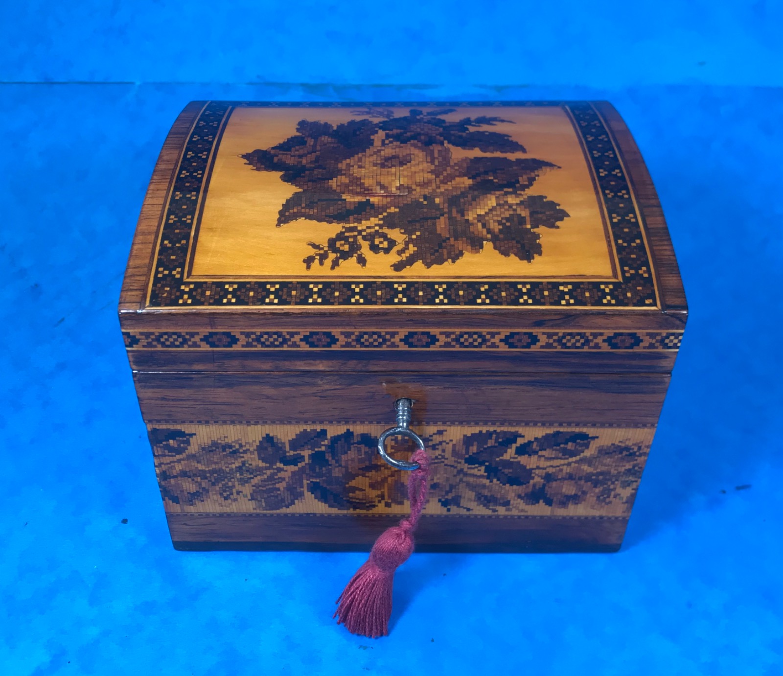 Victorian Rosewood Tea Caddy with Tunbridge Ware Inlay