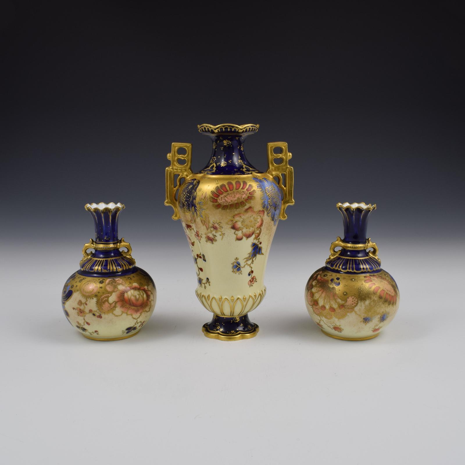 Victorian Royal Crown Derby Garniture of Porcelain Vases