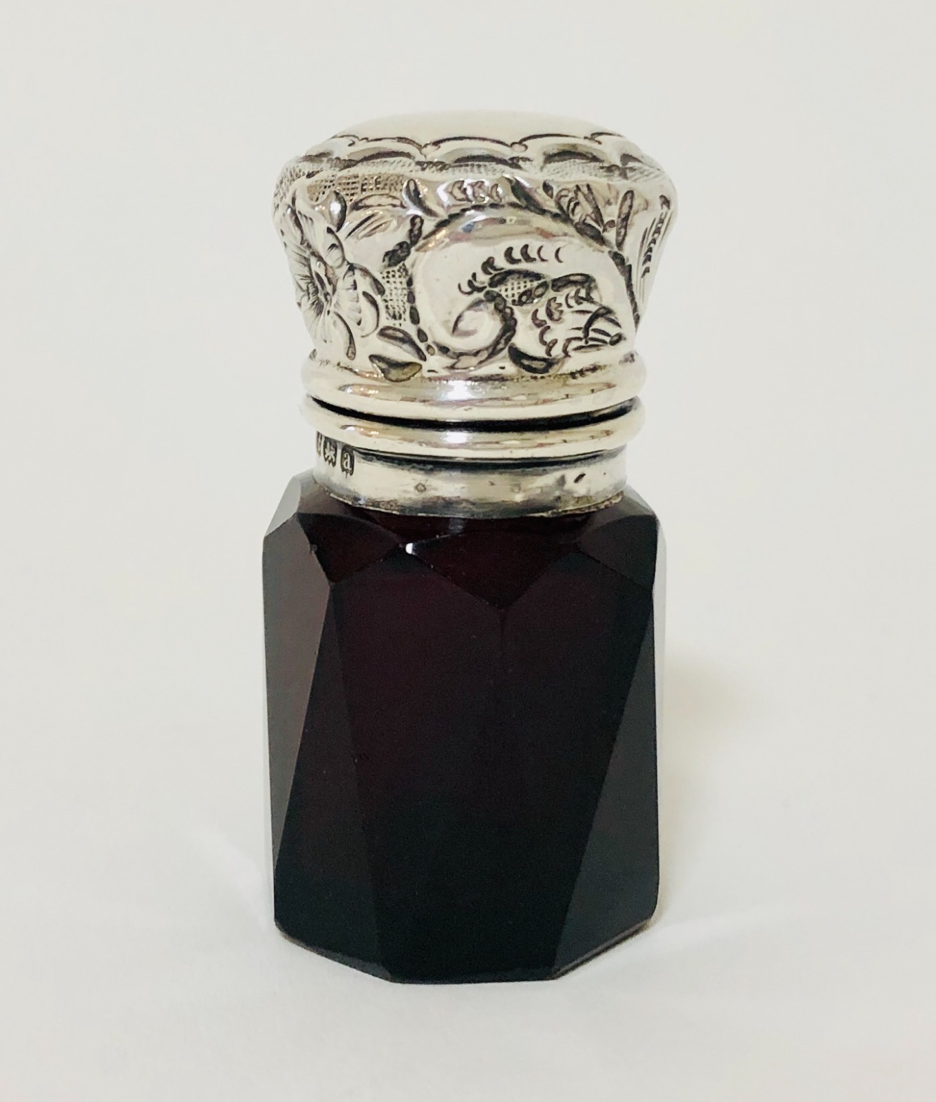 Victorian Ruby Red Cut Glass Scent Bottle with Silver Top (1 of 1)