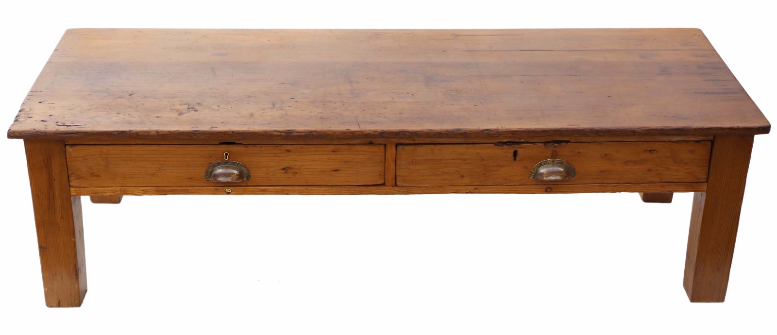 Victorian Rustic Scrub Top Pine Coffee Table with Drawers (1 of 1)