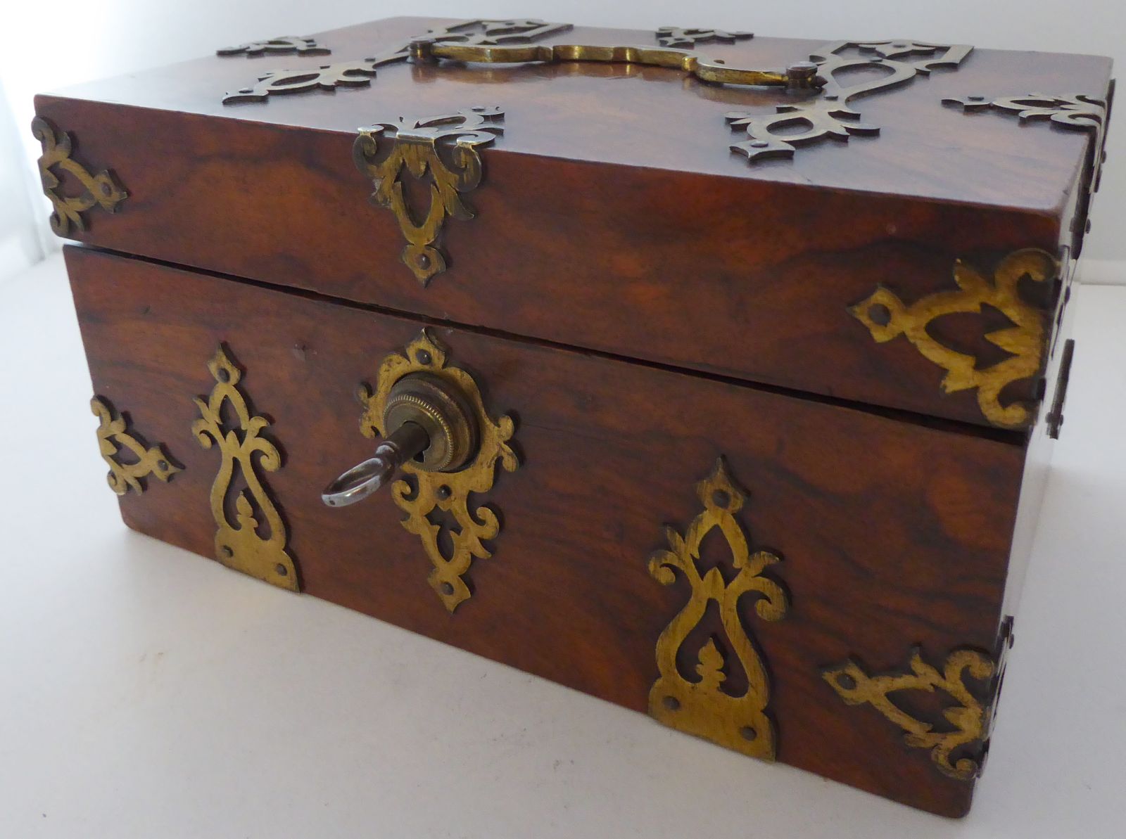 Victorian Sampson Mordan Brigg Walnut Jewellery Box Brass Decoration Bramah Lock
