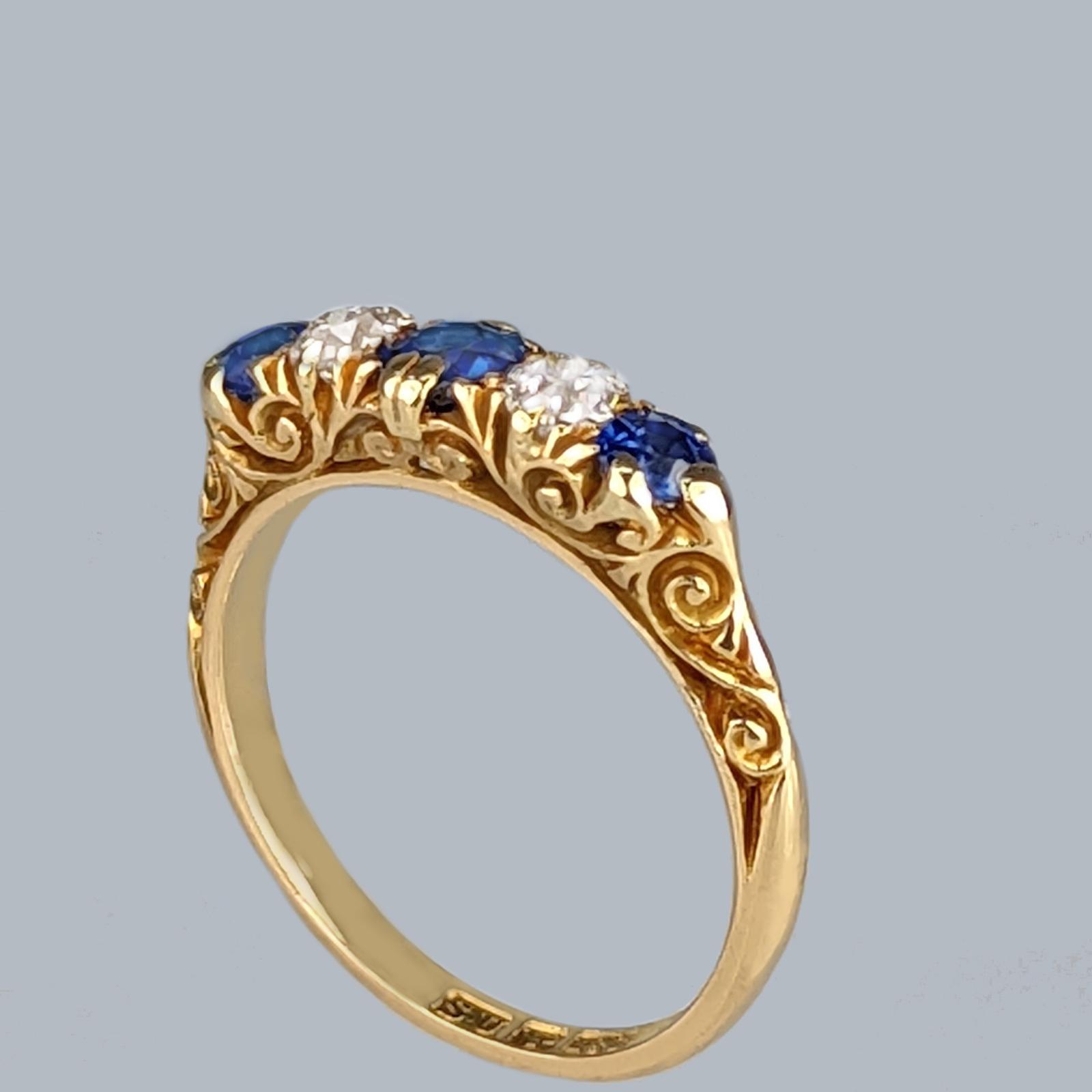 Victorian Sapphire and Diamond Ring 18ct Gold Ornate Antique Five Stone Ring (1 of 6)