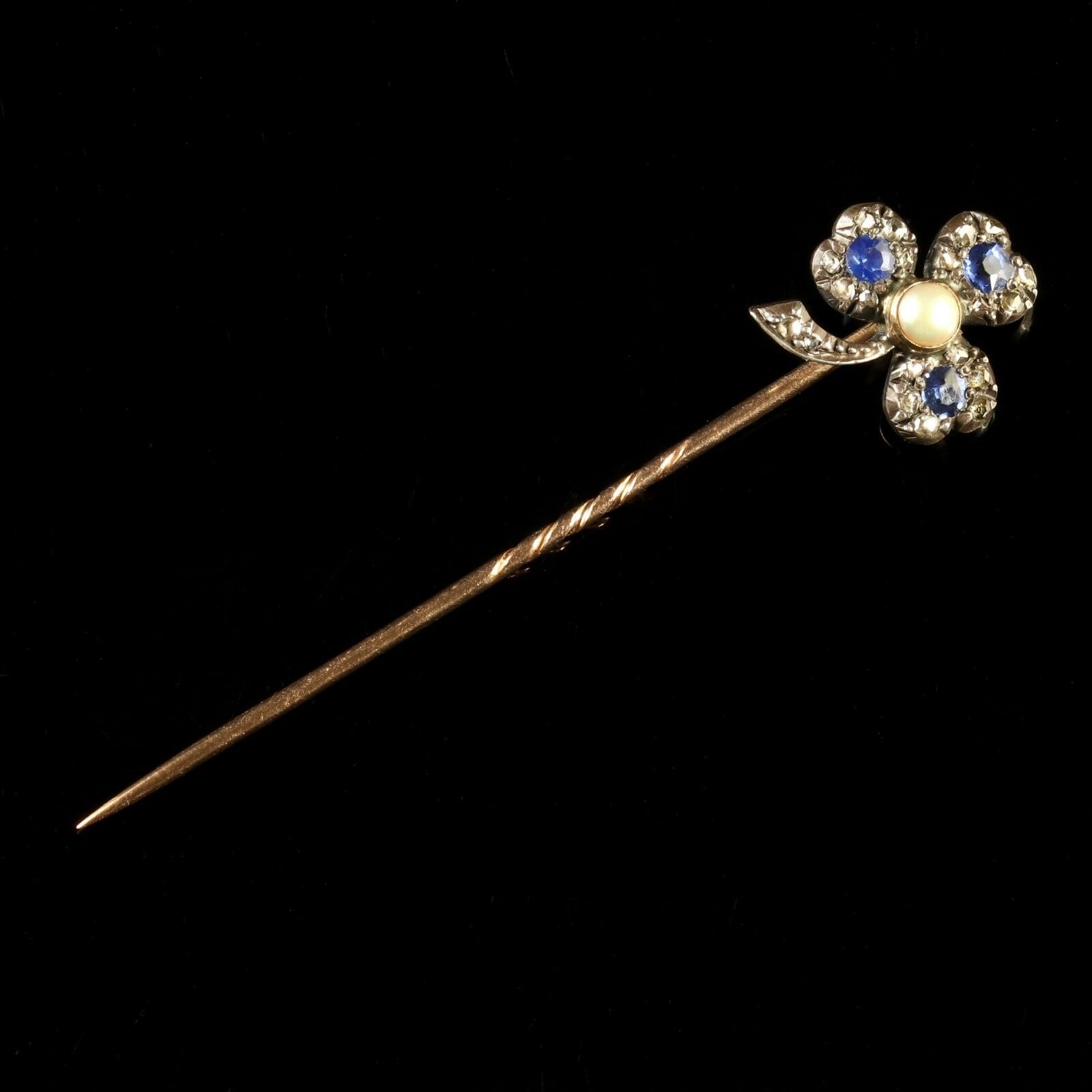 Victorian Sapphire Diamond Pin 18ct Shamrock 1880