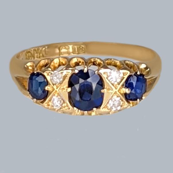 Victorian Sapphire & Diamond Ring 18ct Gold Antique English Ring