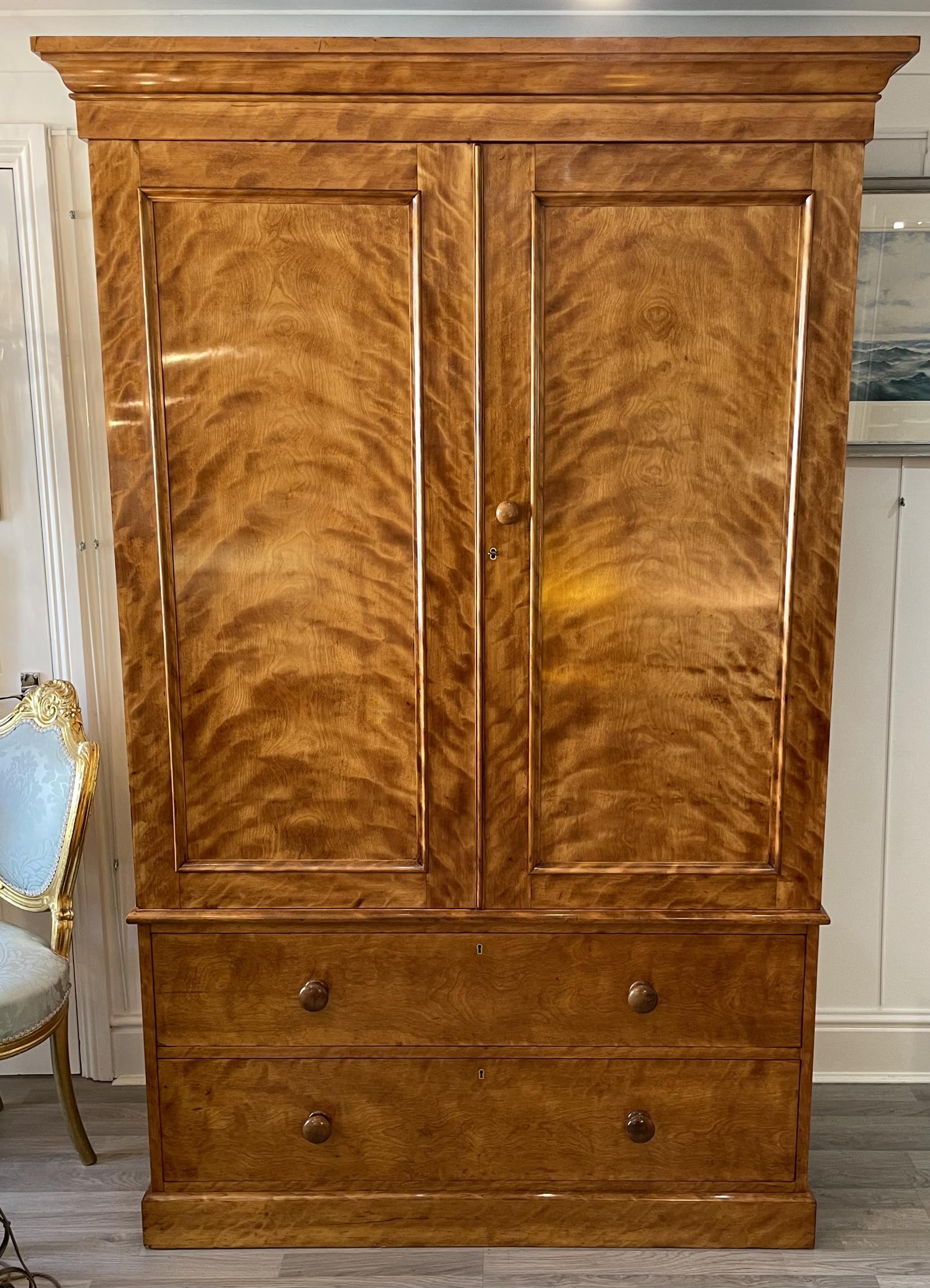 Victorian Satin Birch Linen Press Wardrobe by Heal & Sons