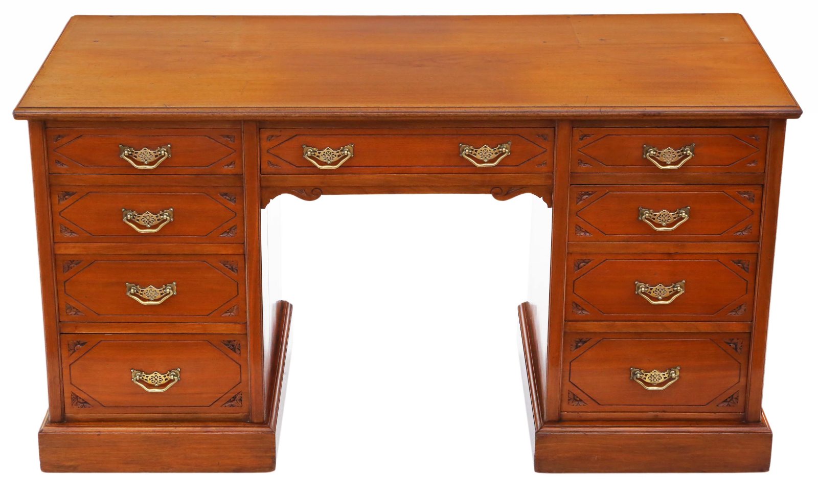 Victorian Satin Walnut Desk Writing Dressing Table Twin Pedestal