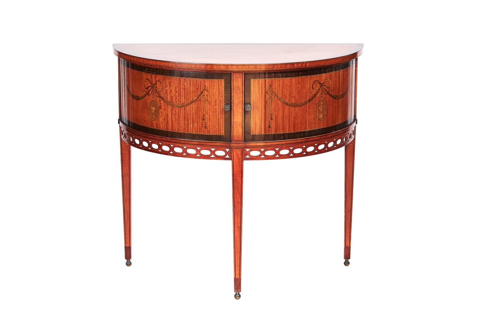 Victorian Satinwood Demi Lune Tambour Cabinet with Painted Decoration