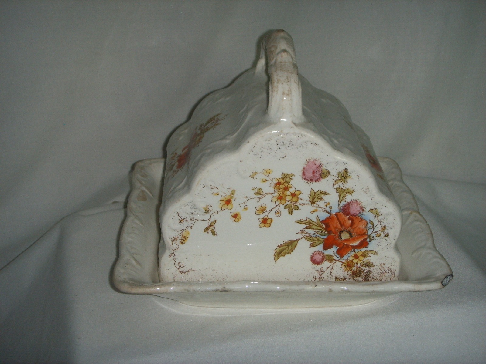 Victorian Scalloped Shape Cheese Dish. Florally Decorated