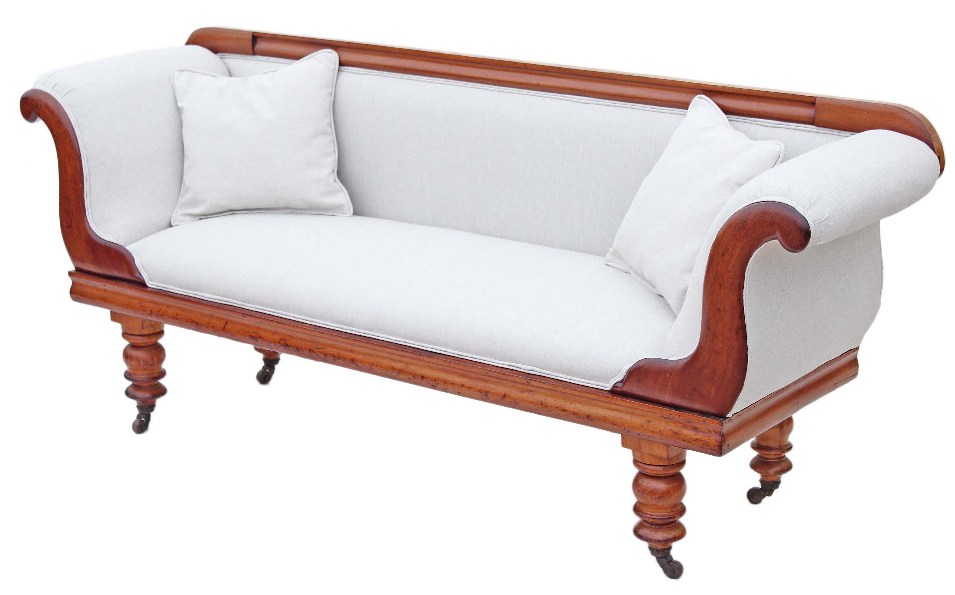 Victorian Scroll Arm Sofa Chaise Longue Satin Walnut Mahogany